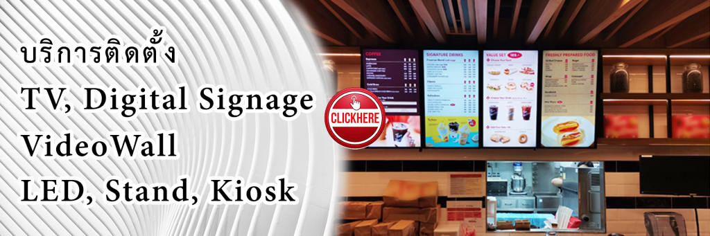 รับติดตั้งจอต่างๆ Digital Menu Board และ จอ TV, Video Wall | ตู้คีออสออกแบบและสั่งทำพิเศษ | Digital Signage Kiosk | ป้ายโฆษณาดิจิทัล | Customized Wall Mount ที่ตอบโจทย์ความต้องการของธุรกิจทุกรูปแบบ ไม่ว่าคุณจะต้องการแสดงเมนูอาหาร, ข้อมูลโปรโมชั่น หรือการแสดงผลแบบวิดีโอที่มีความละเอียดสูง ทีมงานของเรามีประสบการณ์และความเชี่ยวชาญในการติดตั้งอุปกรณ์เหล่านี้ให้ทำงานได้อย่างมีประสิทธิภาพและสวยงาม รับติดตั้งจอต่างๆ…